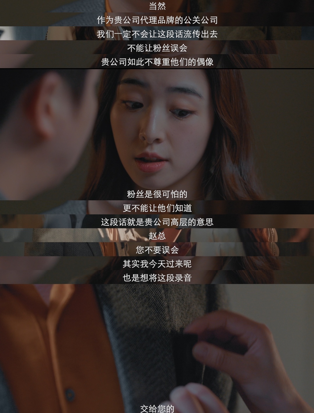 本来以为方欣是个只会崩溃大哭的傻白甜,工作不保还被人将一军,结果她哭完还能踩着高跟鞋、妆容精致地拿着录音笔去谈判。