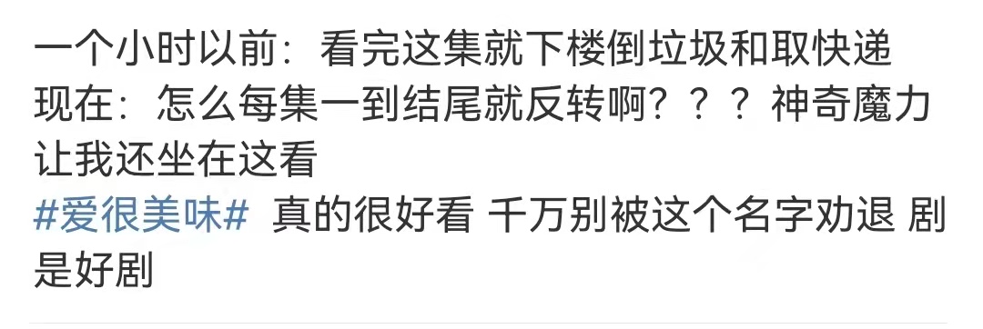 今天#爱很美味 上头#终于短暂地上热搜了,看来大家跟我有一样的想法哈哈哈哈